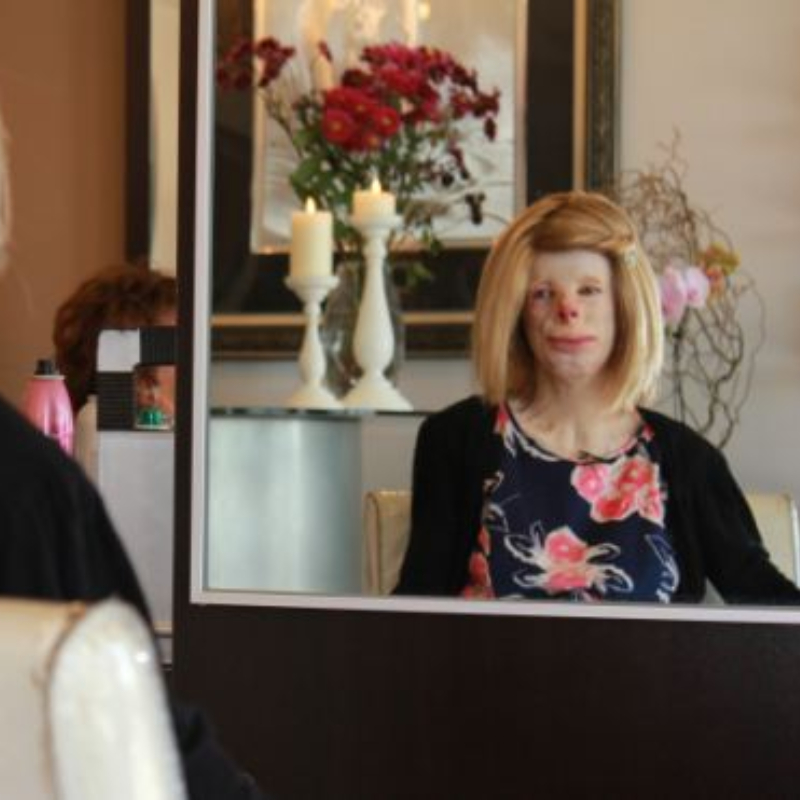 Years passed. Terri grew up among hospital corridors, surrounded by doctors, nurses, and endless operations. More than fifty surgeries followed—to stretch her skin, rebuild her face, and help her body heal. Every operation hurt, every scar told a story. Yet Terri refused to be defined by pain. 🌈 She learned to laugh again, to study, to dream. She wore a blonde wig and practiced smiling in the mirror, determined to live like any other teenager.