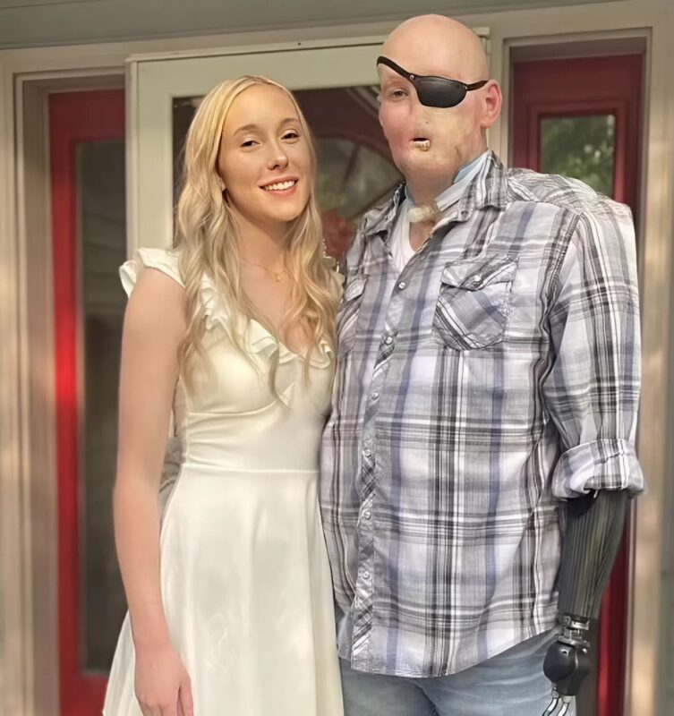 Aaron James, 47, had always been a man of action. From serving multiple tours in the Middle East with the US Army to working as a lineman on Arkansas power lines, he had faced danger more times than he could count. But nothing had prepared him for the day a live electrical wire changed his life forever ⚡. The accident left Aaron with devastating injuries: large portions of the left side of his face gone, his arm severely damaged, and his eye lost. He could no longer smell, taste, or even move his mouth properly. The doctors were uncertain if he would survive, and the first weeks were a blur of pain, surgeries, and intensive care.