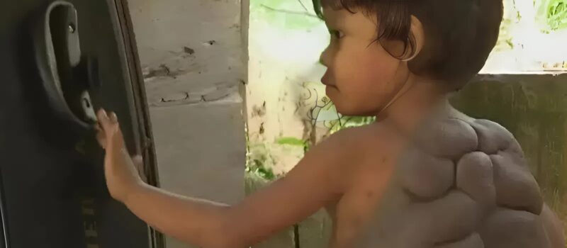 Years passed. When Didier became six years old, the small spots turned into a huge growth. His back was completely covered with a heavy, dark layer, which more and more looked like a turtle’s shell. People in the village began to call him “turtle boy” 🐢.