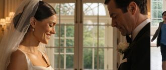 The church was bathed in a warm, golden glow, sunlight streaming through the tall, arched windows, casting patterns on the polished stone floor. Guests murmured softly among themselves, excitement and anticipation hanging in the air like fine dust. The bride clutched her bouquet tightly, a mix of blush roses and white lilies, trying to calm the fluttering in her chest. Her hands trembled slightly, betraying the composure she had been practicing for weeks. Beside her, the groom’s smile was small but genuine, though his eyes betrayed a quiet nervousness.