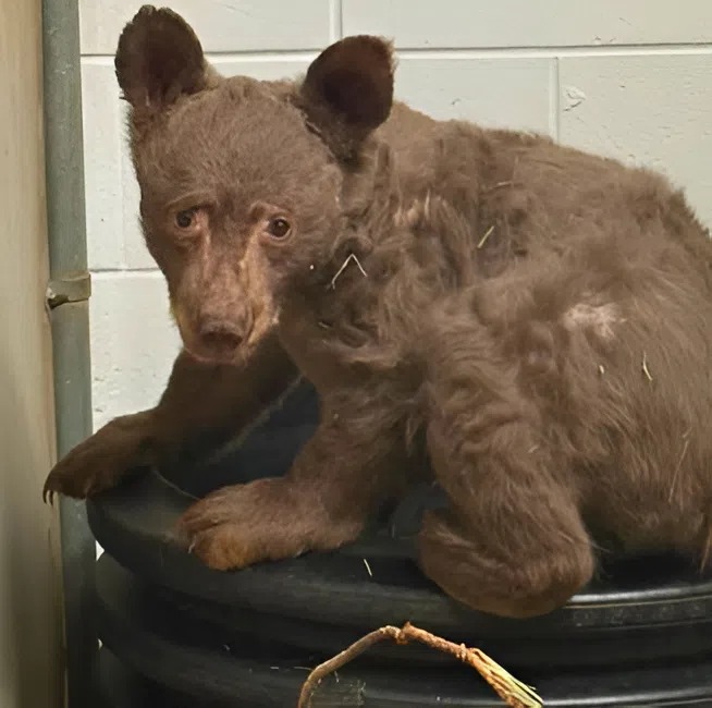The first time the black bear cub arrived at Gold Country Wildlife Rescue in North Auburn, California, the winter air felt heavier than usual. Staff members moved quietly, as if loud sounds alone might fracture the fragile life curled inside the transport crate. The cub did not growl or protest. He simply hunched inward, nose tucked toward his chest, eyes fixed on his oversized paws as though they belonged to someone else 🐾.