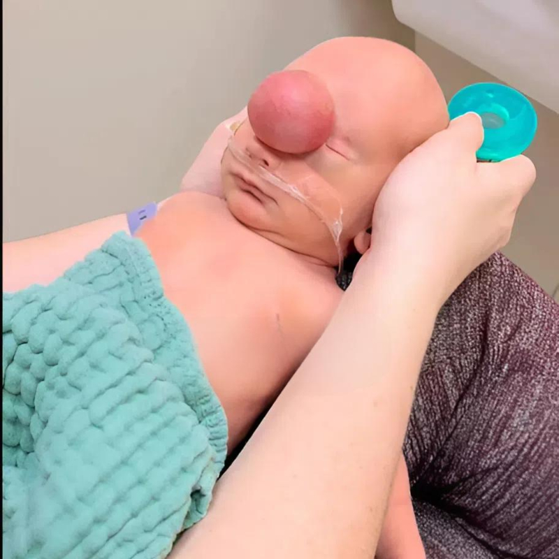 My heart stopped. I looked down at my newborn — tiny, fragile, so warm — and saw a large red swelling covering most of his nose. I froze in disbelief. 💔