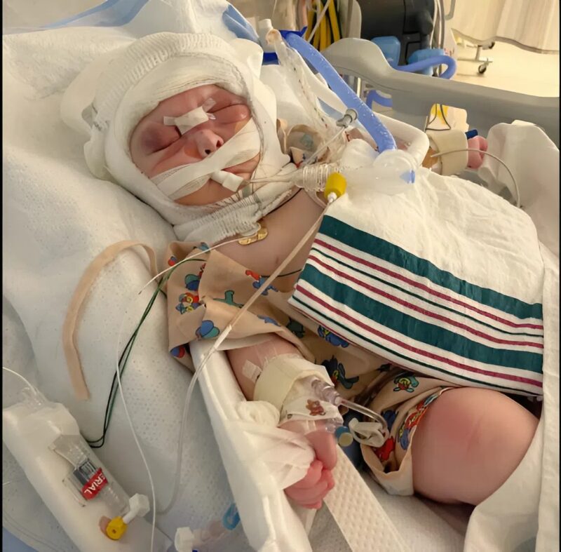 Seeing him afterward broke my heart. His face was covered with bandages, his tiny nose hidden beneath layers of gauze and tubes. I wanted to scream, to trade places with him, to carry his pain myself. But instead, I sat beside his bed and whispered stories — about blue skies, falling snow, laughter, and all the beautiful things he would one day see. 🕊️
