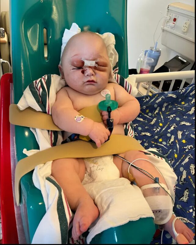 Days turned into weeks. The doctors explained that Ethan had been born with a rare facial malformation — an abnormal mass of tissue growing inside his nasal cavity and pressing outward. Surgery was possible but extremely risky; it could affect his breathing or even his brain. They needed to wait until he became stronger. I spent endless nights by his side, staring at that swelling, hating it for what it had done — yet loving him with every fiber of my being.