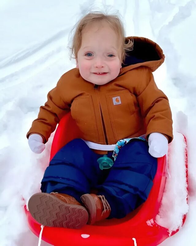 Recovery was slow but miraculous. Each day he grew more curious, his blue eyes full of life. That winter, we took him outside for the first time. He sat in a little red sled, snowflakes melting on his eyelashes. He laughed — a sound so pure it brought tears to my eyes. ⛄