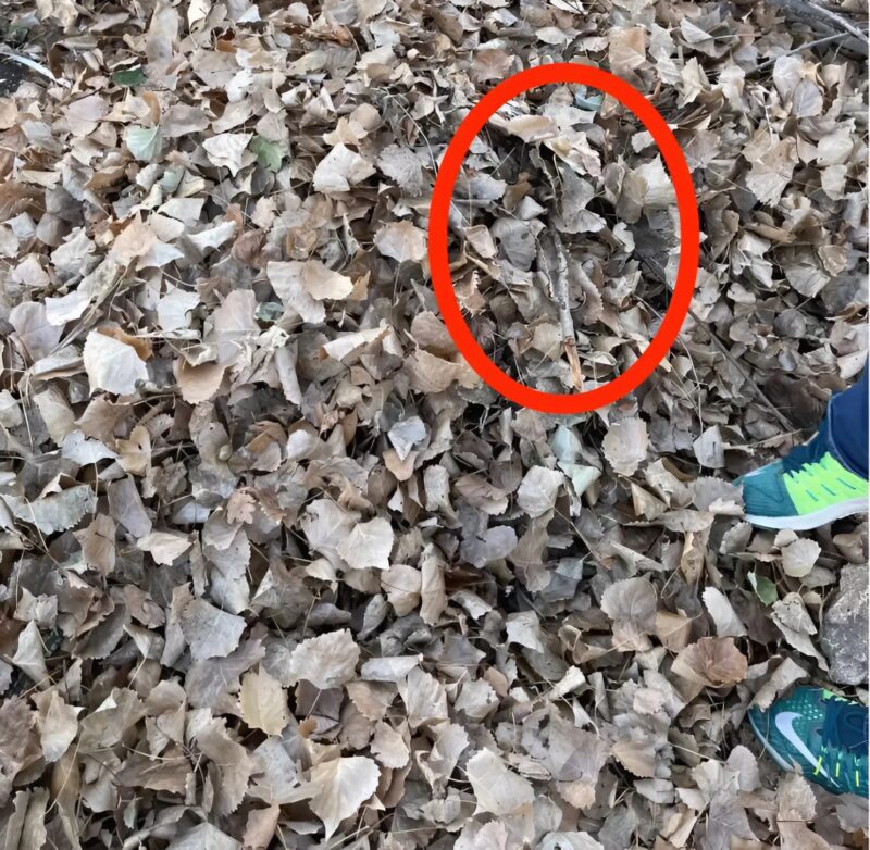 Natashia pulled out her phone instinctively and snapped a photo, catching the exact moment when the leaves settled again. At first glance, it looked like nothing more than an ordinary pile — still, quiet, almost too calm.